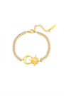 A radiant bracelet featuring sparkling pavé-set crystals with a central crescent moon and sunburst charm. The polished gold-tone finish highlights its celestial beauty, while the adjustable chain ensures a perfect fit.