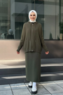Cozy Rib-Knit Hoodie & Long Dress Set – Olive