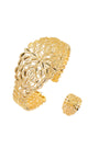 Golden Lace Leaf Wide Cuff Bracelet & Ring Set