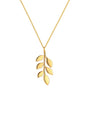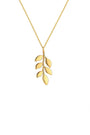 This necklace features a delicate leaf-shaped pendant, crafted with smooth lines and a polished gold-tone finish. The design is both simple and elegant, capturing the essence of nature in a modern form. It’s the perfect accessory for adding a subtle touch of sophistication to any outfit.