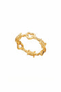 A sweet-meets-edgy band combining heart links with wrapped “barbed-wire” details. Polished gold tone for easy daily stacking.