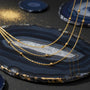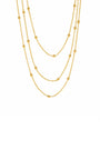 A dainty triple-layer necklace featuring evenly spaced polished bead stations on fine chains. It delivers an effortless layered look in one piece, with a lightweight feel and an adjustable extender for the perfect drop.