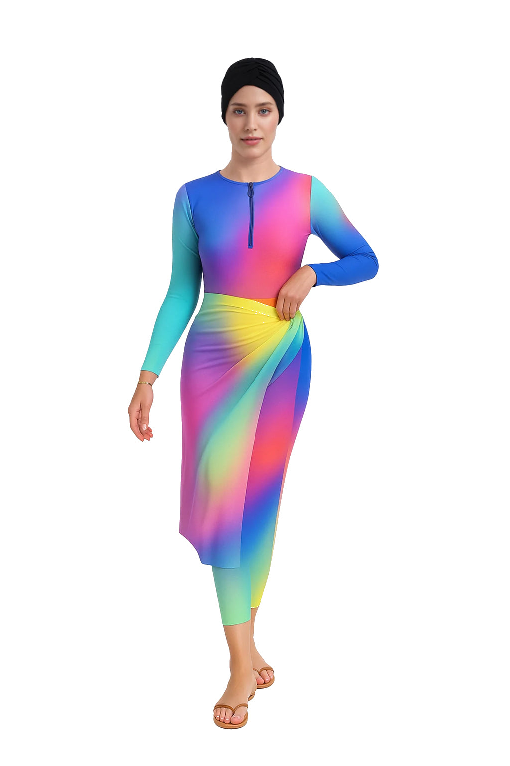 Shadia Modest Burkini 3-Piece Full Coverage Swim Set - Rainbow Dream