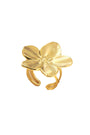 A statement floral ring featuring a sculpted five-petal blossom with lifelike vein texture. The polished gold-tone finish shines beautifully, while the double-band open shank offers balance and a comfortable, adjustable fit.