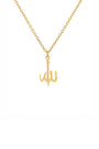 This elegant necklace features a beautifully designed “Allah” pendant in Arabic calligraphy. The clean lines and modern aesthetic make it a timeless piece that complements any outfit. The polished gold-tone finish and fine chain combine to create a sophisticated accessory with deep spiritual meaning.