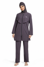 Lightweight technical swim fabric with extra coverage. Quick-dry, chlorine/salt-resistant and breathable, with UPF sun protection. 4-way stretch moves easily; longline full-zip top with modesty overlay stays put. Pants feature adjustable drawcord hems to prevent ride-up. Smooth, low-friction seams and a secure swim cap for confident movement in and out of water.