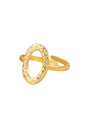 A minimal open ring centered with a hammered oval. Polished finish, lightweight, and slightly adjustable.