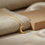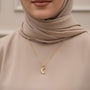 Glow with purity and calm in this crescent moon pendant necklace, accented with three shining stars. Inspired by safa — clarity and serenity — it symbolizes a peaceful spirit guided by light. Perfect for layering or wearing alone, it adds a gentle celestial touch to your everyday style.