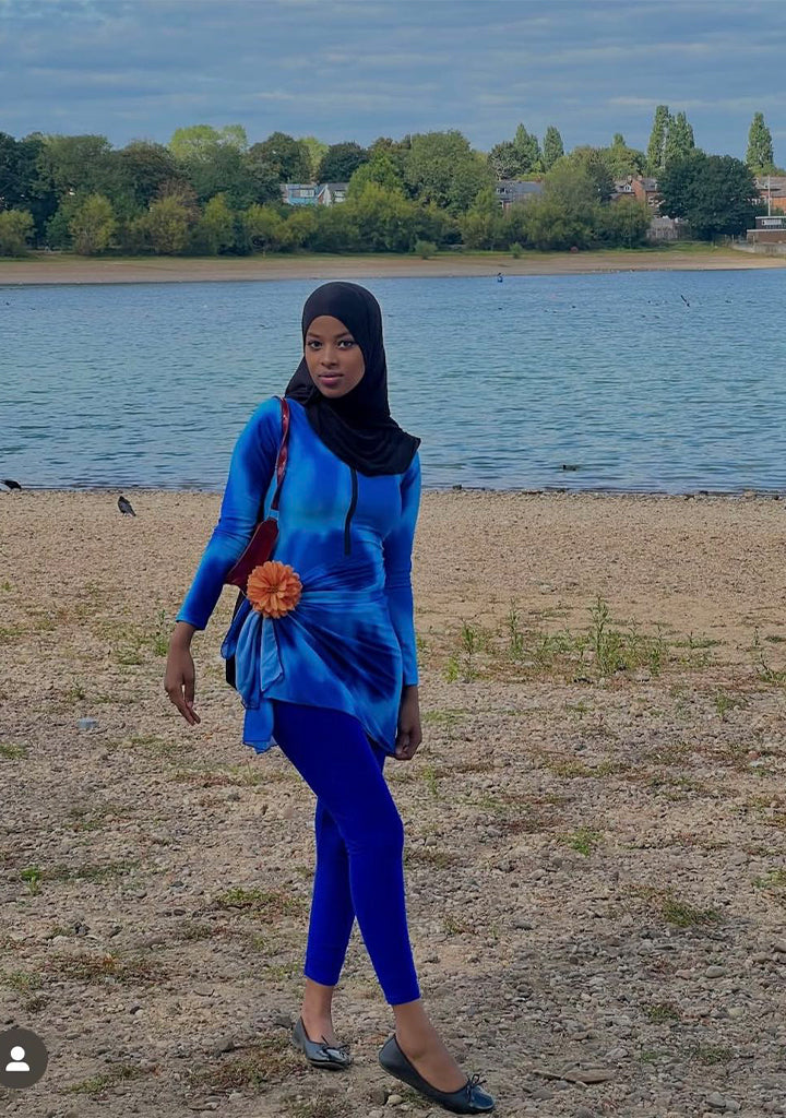 Designed for the modern Muslim woman, the Ocean Blue Tie-Dye Burkini blends fashion, comfort, and modesty—so you can swim, stroll, and relax with grace.