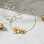 A sculptural necklace featuring two layered blossoms with satin-brushed petals and polished centers. It sits beautifully at the collarbone, adding a soft statement to everyday or evening looks, and includes an extender for easy length adjustment.