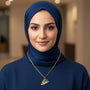 This exquisite necklace features the sacred phrase “La ilaha illallah” (There is no god but Allah) in beautifully flowing Arabic calligraphy. Crafted in a radiant gold-tone finish, the pendant hangs gracefully from a fine chain. It serves as a meaningful expression of Islamic faith and spiritual devotion, wrapped in elegant design.