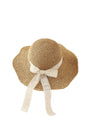 Lace Bow Wavy Wide-Brim Straw Beach Hat